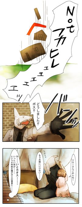 鮫男&女の子。更新です!新新キャラ登場です!次は一体どんな鮫が登場するのか、お楽しみに!
