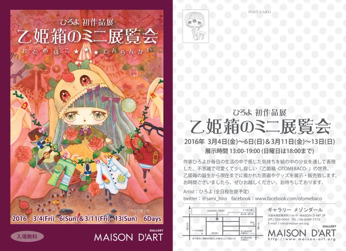 @Lupopo_cafe 企画展ありがとうございます。生活の中で感じた気持ちを絵の中の少女を通して表現しています。3月4日~6日、11日~13日に大阪のギャラリーメゾンダール様で初の作品展を開催します。ご興味あれば是非お越し下さい。