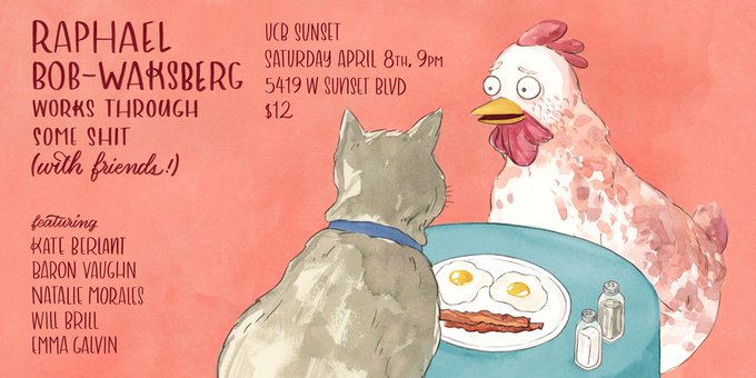 Illustrated Raphael Bob-Waksberg's show poster for his reading at UCB this Saturday.