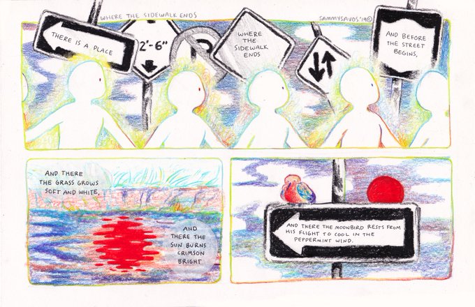 for class we had to make a comic using audio/lyrics/poem! i used "where the sidewalk ends" by shel silverstein!
