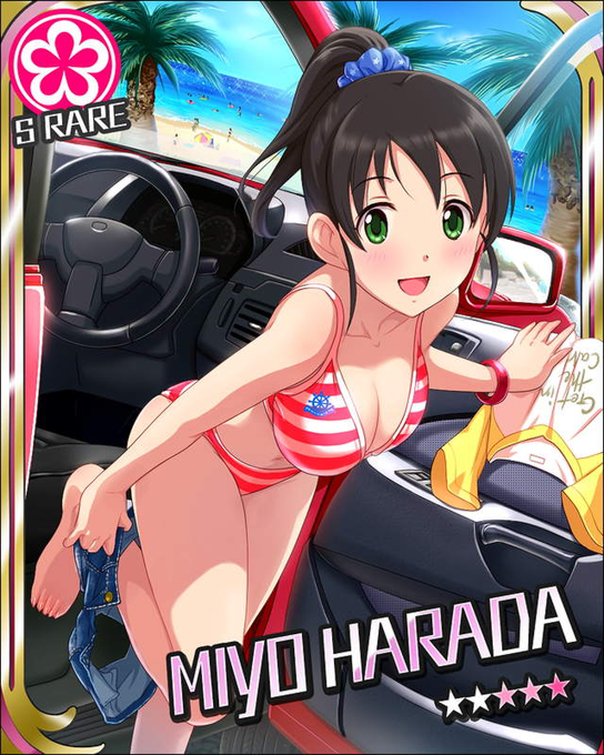 かくし芸アイチャレのスマイル差分の方ですね。満面の笑みが勿論かわいい一枚ですが、個人的にはリボンやハートマーク、星の模様をちりばめた着物も見どころだと思ってます。13歳の女の子って感じが出てるんじゃないかなと。