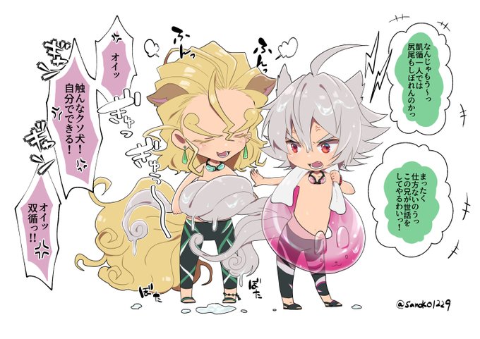 🐩来なさ過ぎて水着狛犬兄弟をショタで描いてしまったゾ