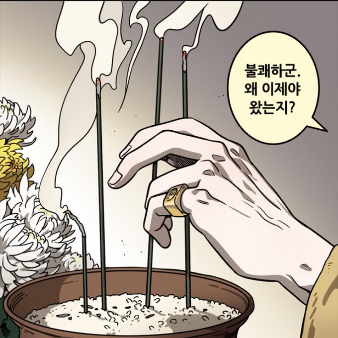 조맹덕 이 짤 넘 사고치다 쿠당탕탕 다 망가뜨리고 혼나는 냥이 같아서 귀 한 번 그려줌... 아 근데 가슴 차이고 아파서 손으로 문지르는 거 넘 맴찢이네 ㅠ...