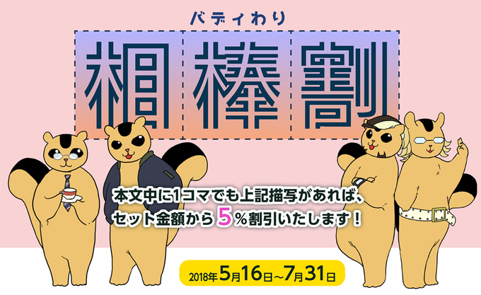 【キャンペーン予告】san24期間限定割引第4段は『相棒割』に決定!相棒と書いてバディと読む『バディわり』です。相棒関係がわかる描写が1コマ(一文)でもあれば印刷料金5%OFF、早割との併用で15%OFF!5月16日から開始予定です https://t.co/qZRaroHTSO