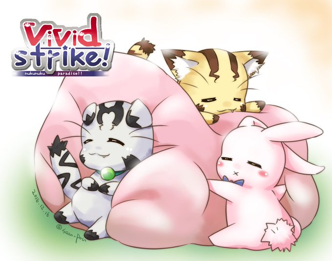 もちもちクッションのテンプレお借りして、Vivid_strikeのクリス、ティオ、ウラタンをアイキャッチ風にとろけさせてみたw(╹◡╹)ノ<ウラタンが可愛く描けて満足www