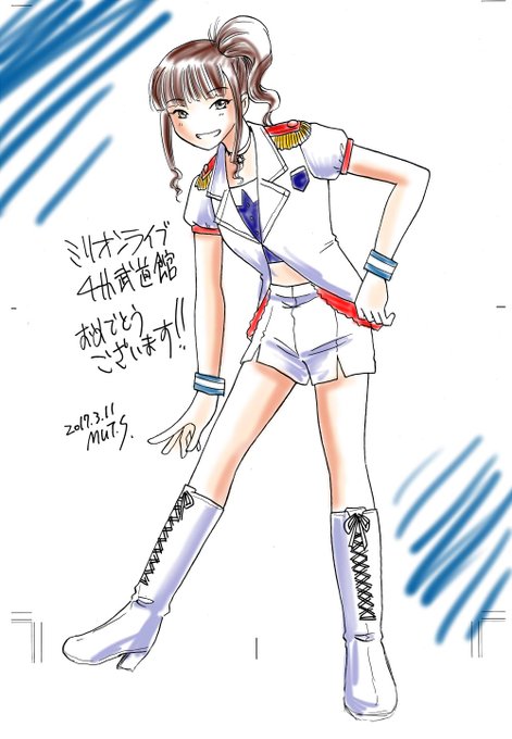 #ミリオンLIVE一挙放送day12 ミリライブ初見だったので「ユイ㌧足なっげぇなあ」で描いたユイ㌧。160台であのスタイルだから顔がちっちゃいんだな。