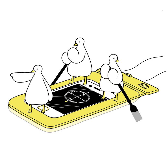 スマホ防水ケースジャーニー⛵️ #アヒルライフ #イラスト #方位磁石アプリ