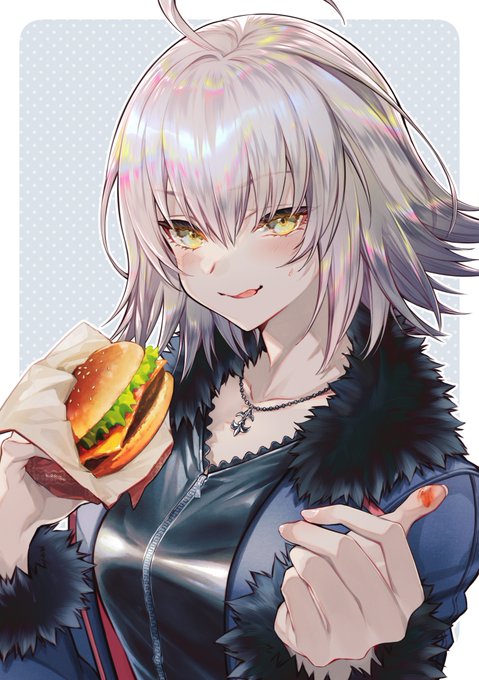 リクエスト企画絵15。FGOから新宿服ジャンヌオルタ。ケチャ拭ってペロってしてやろうと思ったけど照れてなかなか動かないみたいなイメージ(伝わらない)リクエストありがとうございました!