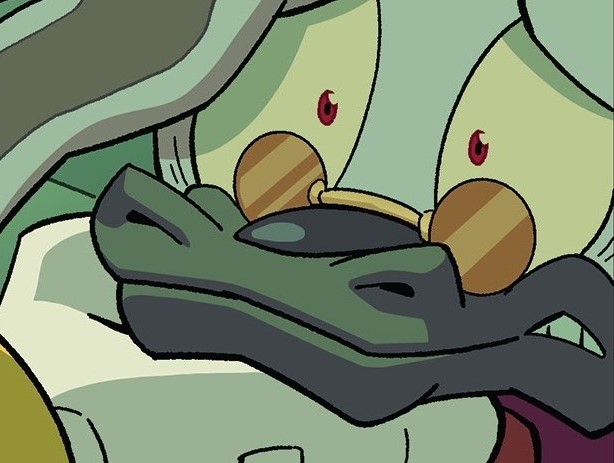 Belle the Tinkerer/Puppet reaction of Bubsy the Bobcat (from Sonic IDW comic books, Sonic the Hedgehog series)