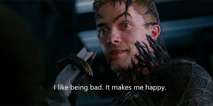 Eddie Brock/Venom: I like being bad. It makes me happy.