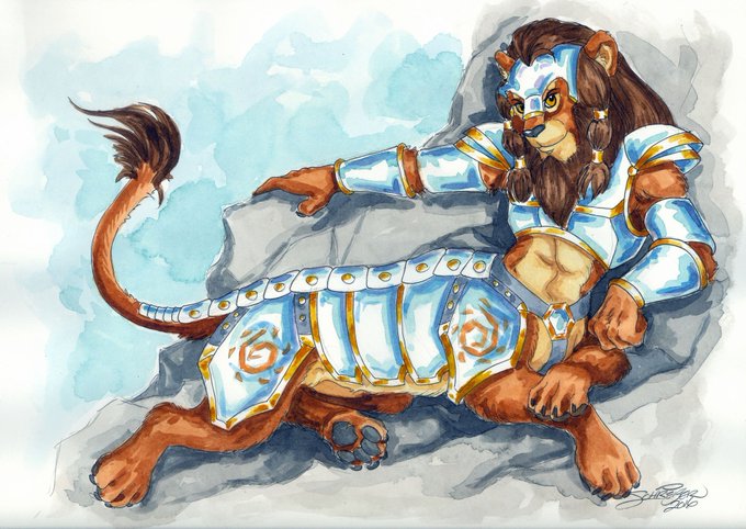 Watercolor for a client. Bast wears some very shiny armor!