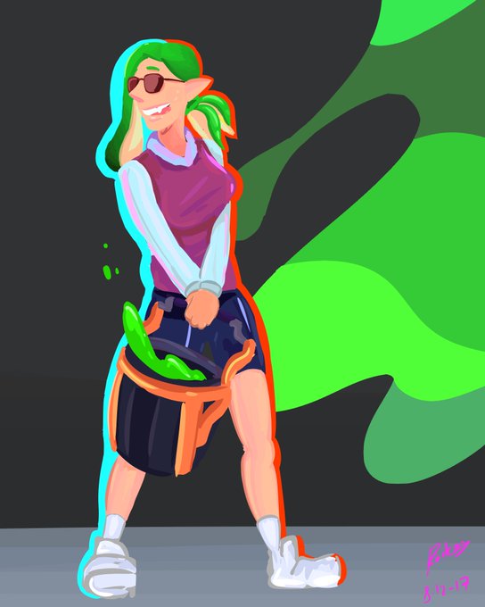 d-did someone say #splatoon oc??!? MEET MY GREEN BOI!!! splattershot jr. + bucket main