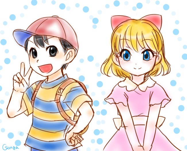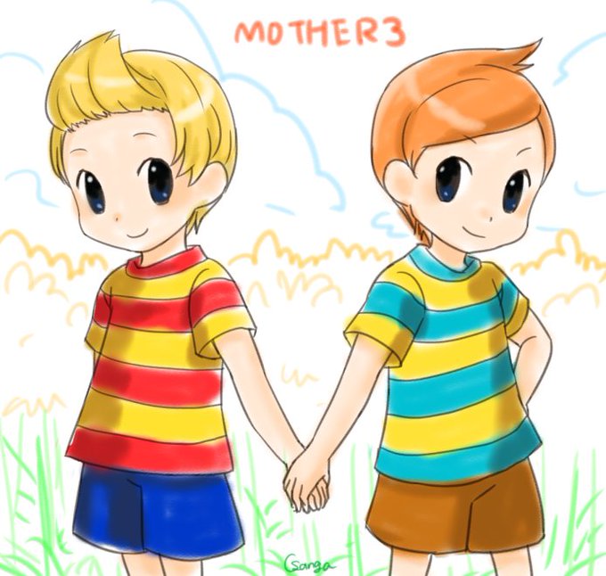 【落書き】数時間前に上げたネスとポーラをデフォルメにしてたので、自分の絵柄で描いたらどうなるか検証…うーん(笑)