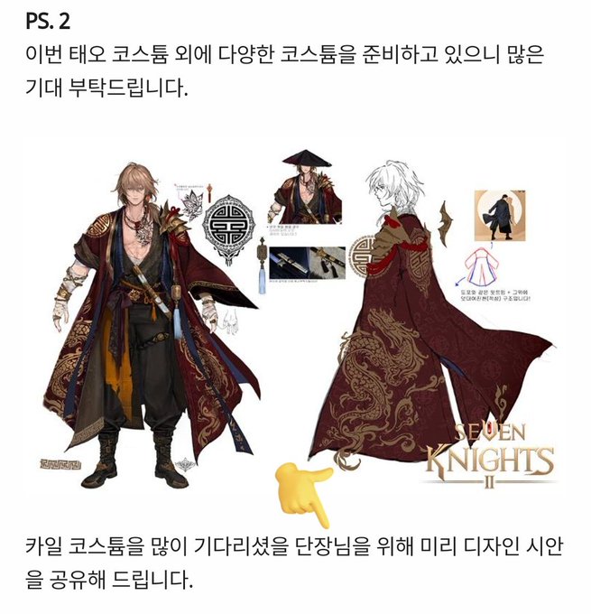 @Pumpkin_sena_ 동양옷을 좋아하시는 호박 님에게 또다른 좋은 소식입니다!!!!!!!!! 태오 코스튬과 비교해서 잘 보면 대비적인 점을 잘 부각해 주셔서 개발자 분들이 진짜 배우신 분들이에요...!!!!!!
