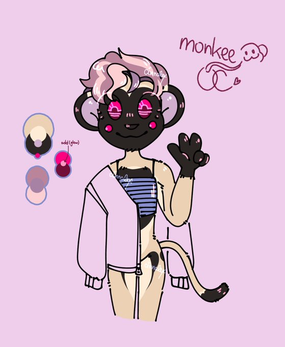 monkee time!!! i got too tired to draw the jacket, but they like wearing cool windbreakers ☺️ for a name I'm thinking Kix or Pepsi~ 🥤