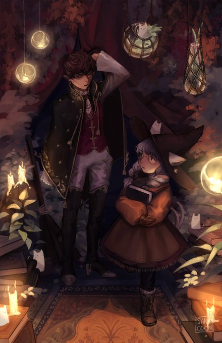 self indulgent illus of my ocs callista and talsi.... was hoping to finish for halloween but alas