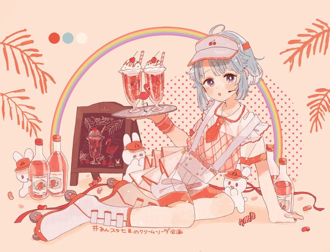 赤色×しののん担当でした🍒🐰はすまるさんありがと〜ッ! #あんスタ七色のクリームソーダ企画