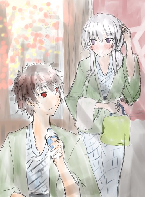 温泉行きたいなぁ…と思うけれど、制作に全振り中なのでそんな時間はありません…。なので代わりに睦月と彼方に行ってもらいました♪このシチュと構図凄く好きなのでそのうち清書します。