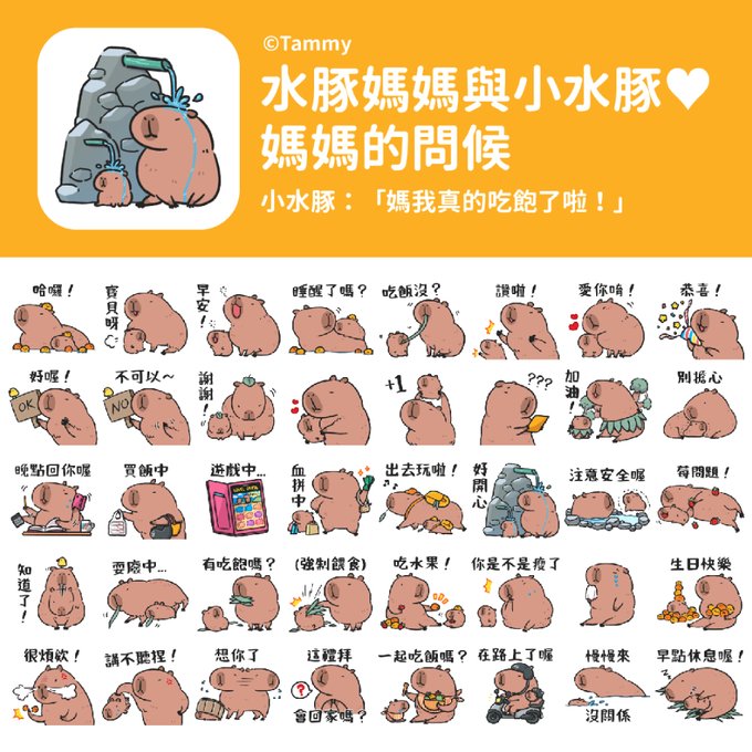 #水豚媽媽與小水豚 #LINE #貼圖
