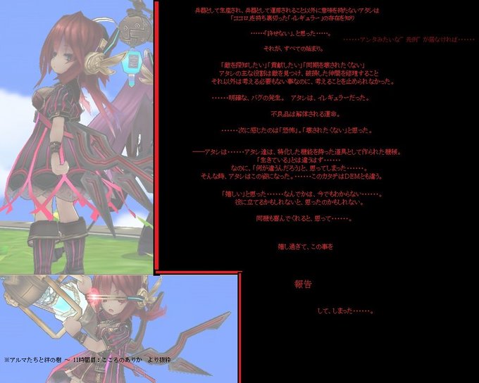 ECOの過去の通年イベントより。主にロボ娘クラスタに向けてのオートメディック・アルマのぐっと来る台詞抜粋集出来ました。