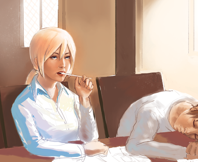red hair and pantsuits!!