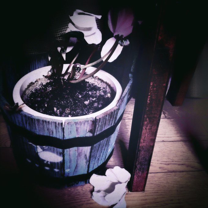 変な時間に居間で眠ってしまったみたいで今起きたんですが、目を開けた瞬間シクラメンが落ちた