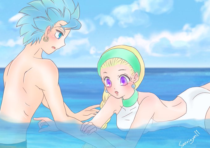 山育ちで海水浴をしたことがないセニャちゃんに海慣れしたカミュさんが泳ぎを教えるという妄想が降ってきて思わず描いてしまいました。