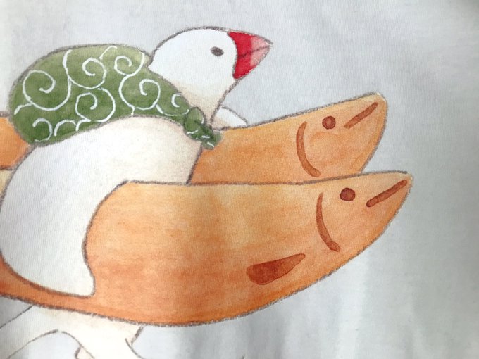 ただいま開催中の #小鳥のアートフェスタin横浜 で、イルカ胴上げデザインのふろしき文鳥ネームタグを販売中です!同じイラストのポストカードも置いてます。ポストカードは在庫限りでもう作らないので、欲しい方いらっしゃいましたらぜひ😀