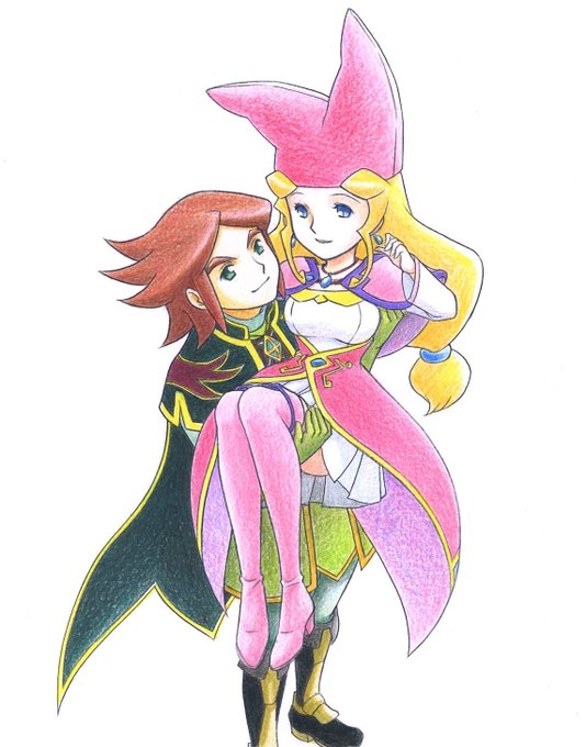 スマホアプリでポポロクロイスの新作?!かつてポポロクロイス2が大好きだったので実に楽しみです!発表されたキャラデザをお手本に色鉛筆で描いてみました(この二人ならやはりこのポーズを描かずにはいられなかった…)#ポポロファンアート