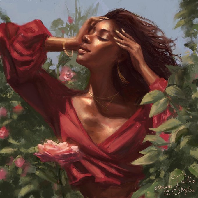 hiii #drawingwhileblack I’m Talia! I love painting magical portraits 💛✨