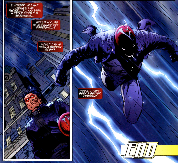 Speaking of that Teen Titans issue, that final line raises another interesting point. A lot of people mischaracterise Jason as believing his actions are completely righteous. But it's clear from this moment that he's self-loathing and thinks he's a bad person. He doesn't think-