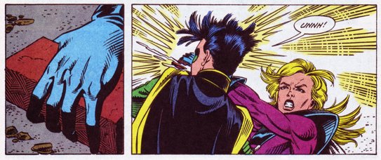 The other thing about Kory in Titans Together I really like? Her hair! While I'd prefer red to magenta, I love how *big* it is. Kory should be drawn with a big 80s perm at all times, it's iconic.