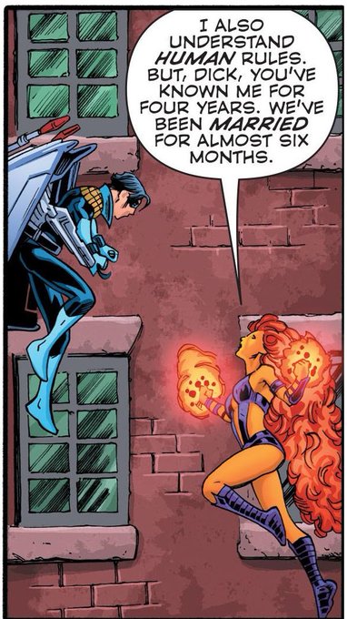 Thinking about Dick and Kory in Convergence: New Teen Titans, and how they're happily married 💕
