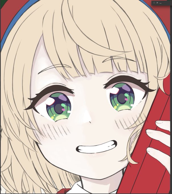 まだ全然塗れてないけど目を本人と同じ感じの塗りにしてみただけでういママ感出るの凄いな… このキラキラした感じの目好きなんだよな…