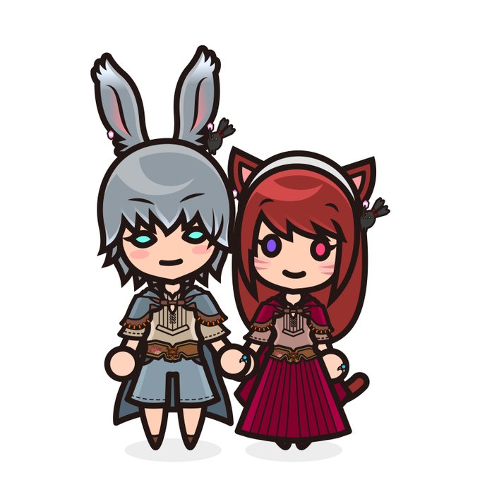 お揃いミラプリのヴィエラさんとミコッテさん