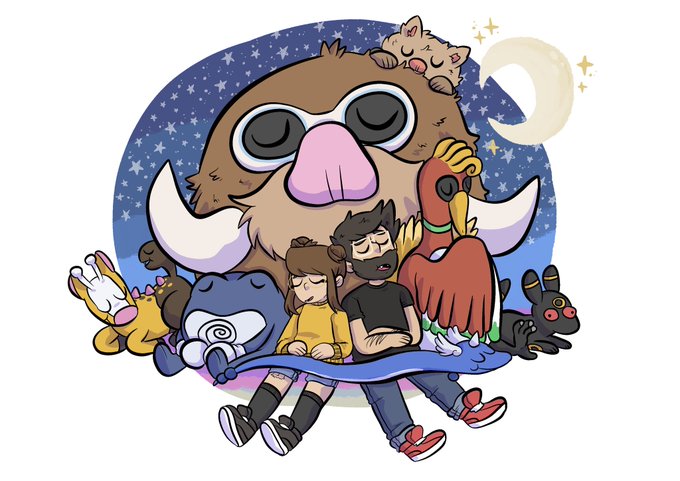 Here’s my Pokémon art from today’s stream! It’s us and our extended current squad! ✨✨✨