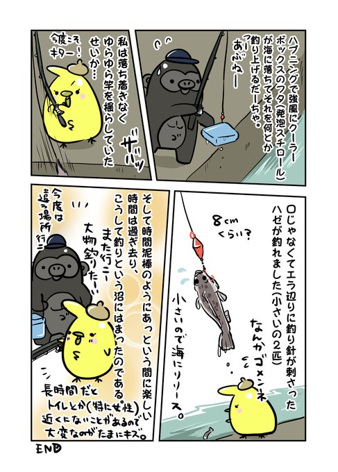 エッセイ漫画 釣り始めました。~入門から穴釣り編~ #漫画 #エッセイ漫画 #まんじりひよこ #ゴリラだーちゃ #穴釣り https://t.co/7d4pHLWfX0