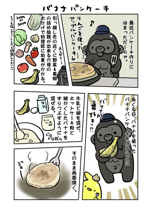 バナナパンケーキ #漫画 #エッセイ漫画 #まんじりひよこ #ゴリラだーちゃ #バナナパンケーキ https://t.co/e4Y1ZIqpni