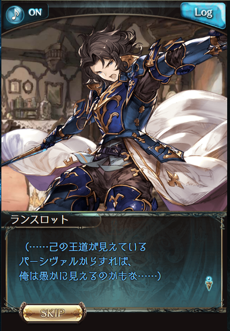 通常SSRランスロットのエピが国の統治方向に向いて、上限解放エピからパーシヴァルが介入してきた。ランスロットが悩んでる時とか迷ってる時は、パーシヴァルのいつもの皮肉できつい言い方の裏の真意を見抜けないらしい。サイドの時もそうだったけど
