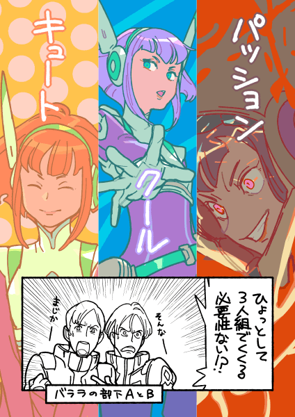 世にいる3人組が3タイプに分けられると聞いて。バララの部下けっこう好きなんだけど、もうちょっと踏み込んでキャラ付けされてたら何担当になるのかなーとか想像するの楽しい。
