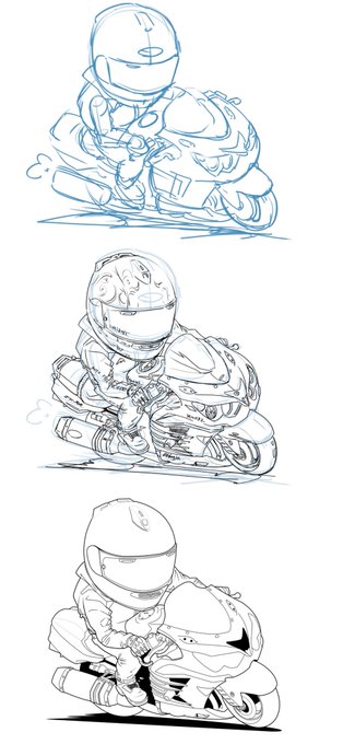 上から、アタリ→ラフ→線画。