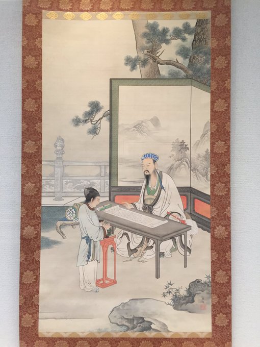 雅邦の《諸葛亮読者図》、手摺の飾りの獅子がやたらカワイイの何