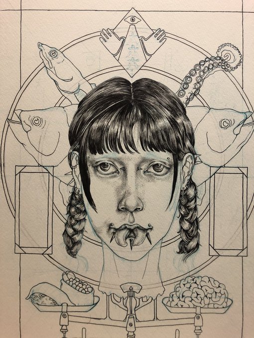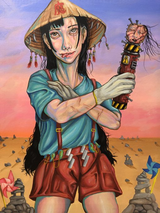 最近のやつや、 過去に描いたやつで 気に入ってるやつと ゴアこけしと 特殊メイクしてた時の自分。 #これが私の代表作
