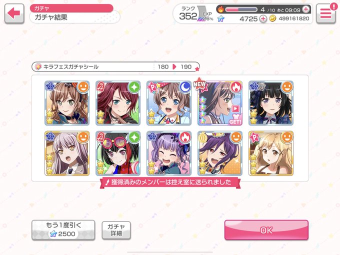 よっしゃー! 実質天井の200連目前でおたえキターー!! \(*ˊᗜˋ*)/ ポピパコンプ勢復帰!😃 #バンドリ #ガルパ