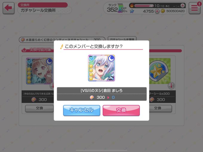 バースデー香澄ちゃん交換でおいでいただきました😃 ちょうど50種類目のメンバーだそうで新しいキャラ称号も獲得