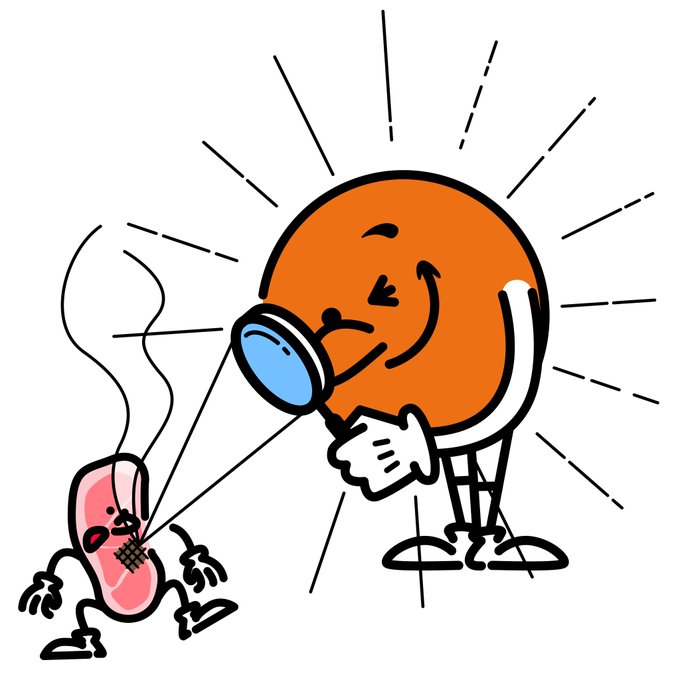 8/29は #焼肉の日 イラストは太陽が虫眼鏡で肉を焼いているところです。 良い子はちゃんとした虫眼鏡の使い方しましょうね。 #イラスト