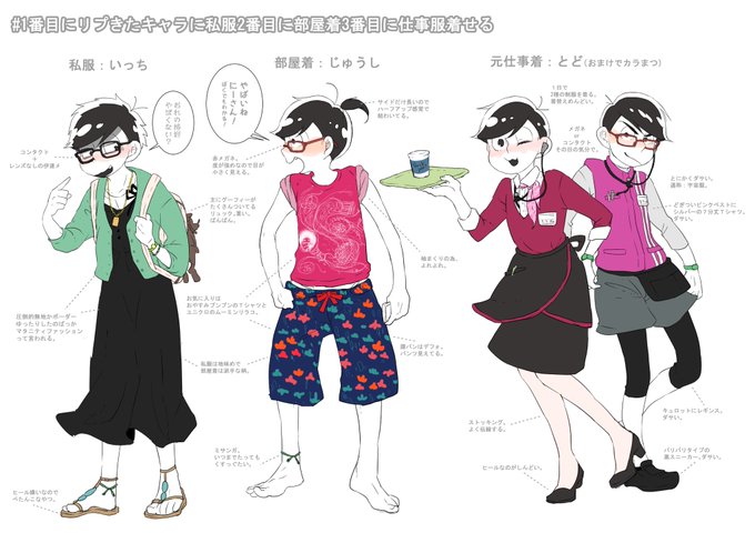 #1番目にリプきたキャラに私服2番目に部屋着3番目に仕事服着せる
