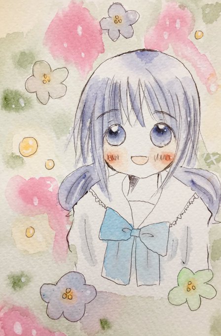 イメチェンリノ 透き通った感じに可愛く塗れたので、とても原画を再現したかったのですが、やっぱり無理でした…。 おでこ出してる子を描くのが好きです( ˊᵕˋ* )