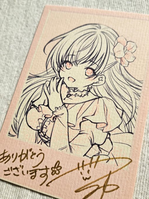 他作品は引き続きお迎え待機中。大色紙風原画にはおまけでイラストカードをご用意しました。デジタルラフ+色鉛筆着色です。