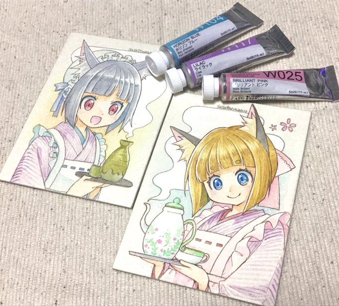 両イベントに振り分ける予定の色紙です。こちらは一般的な色紙サイズ。リプ欄に小さめサイズや額入り原画等の持参候補リストあります。